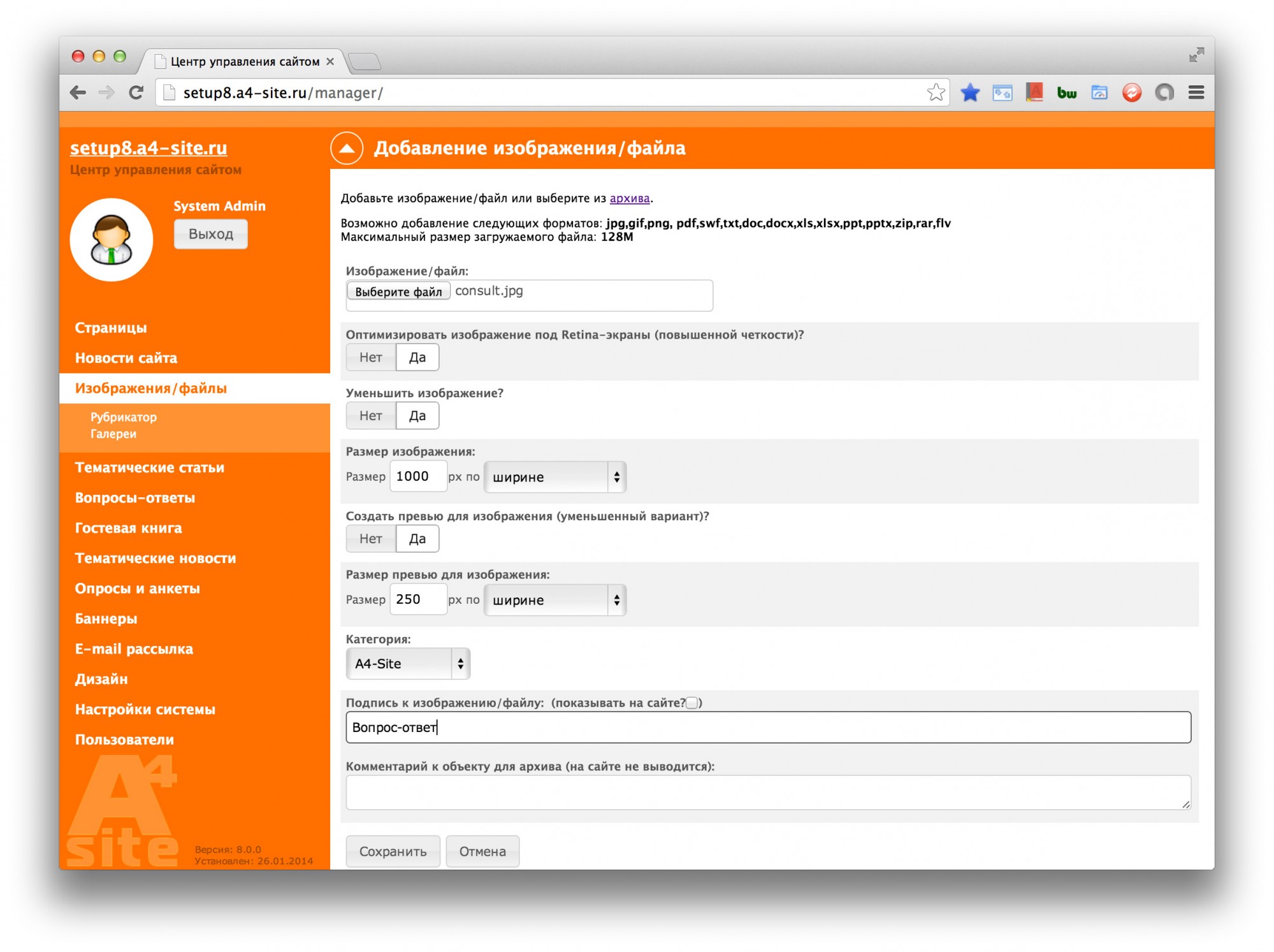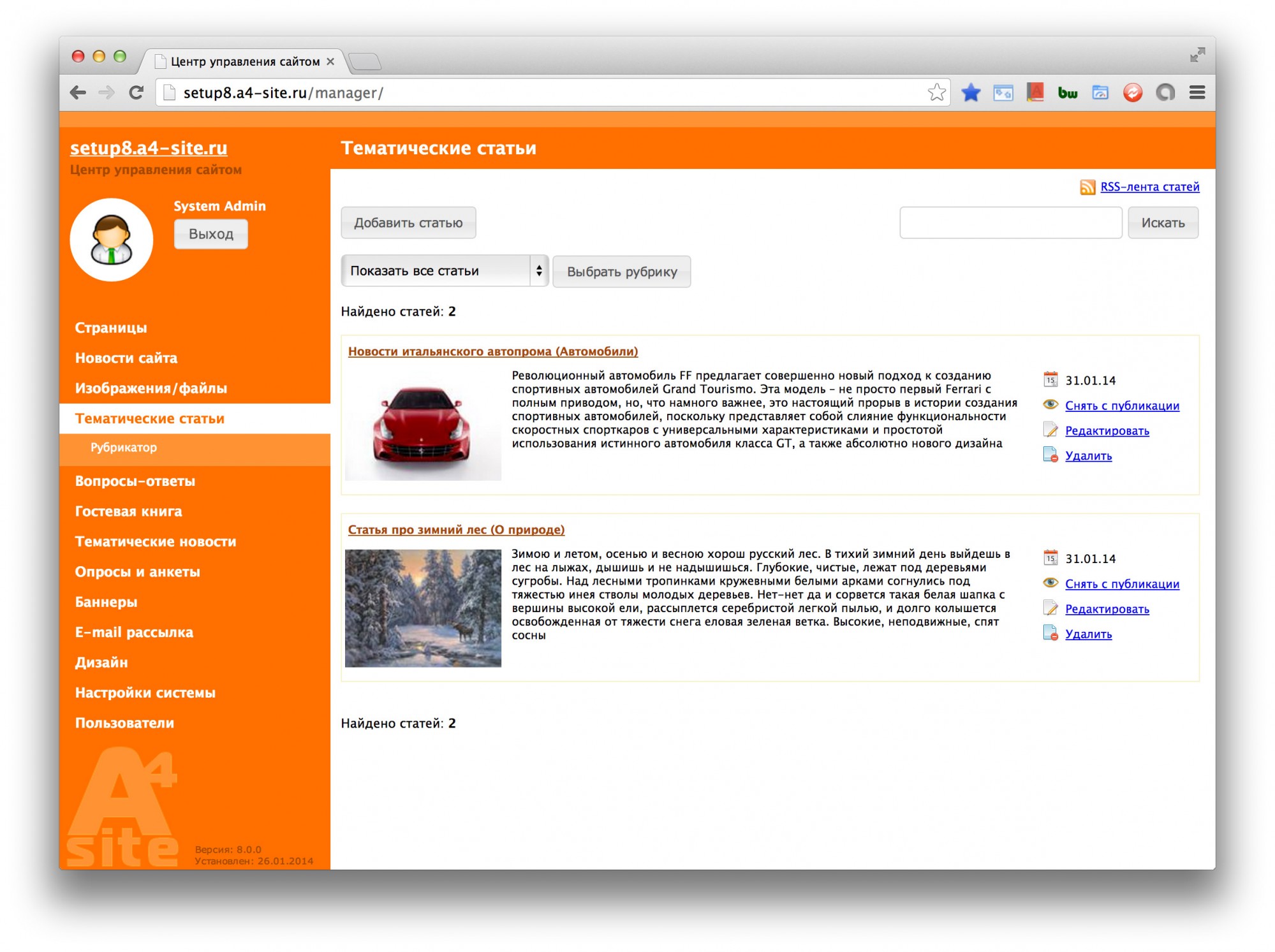 Нижепредставленные изображения были помечены, как принадлежащие одной категории "A4-Site". А на эту страницу была вставлена спецметка % %gallery_a4-site% %.